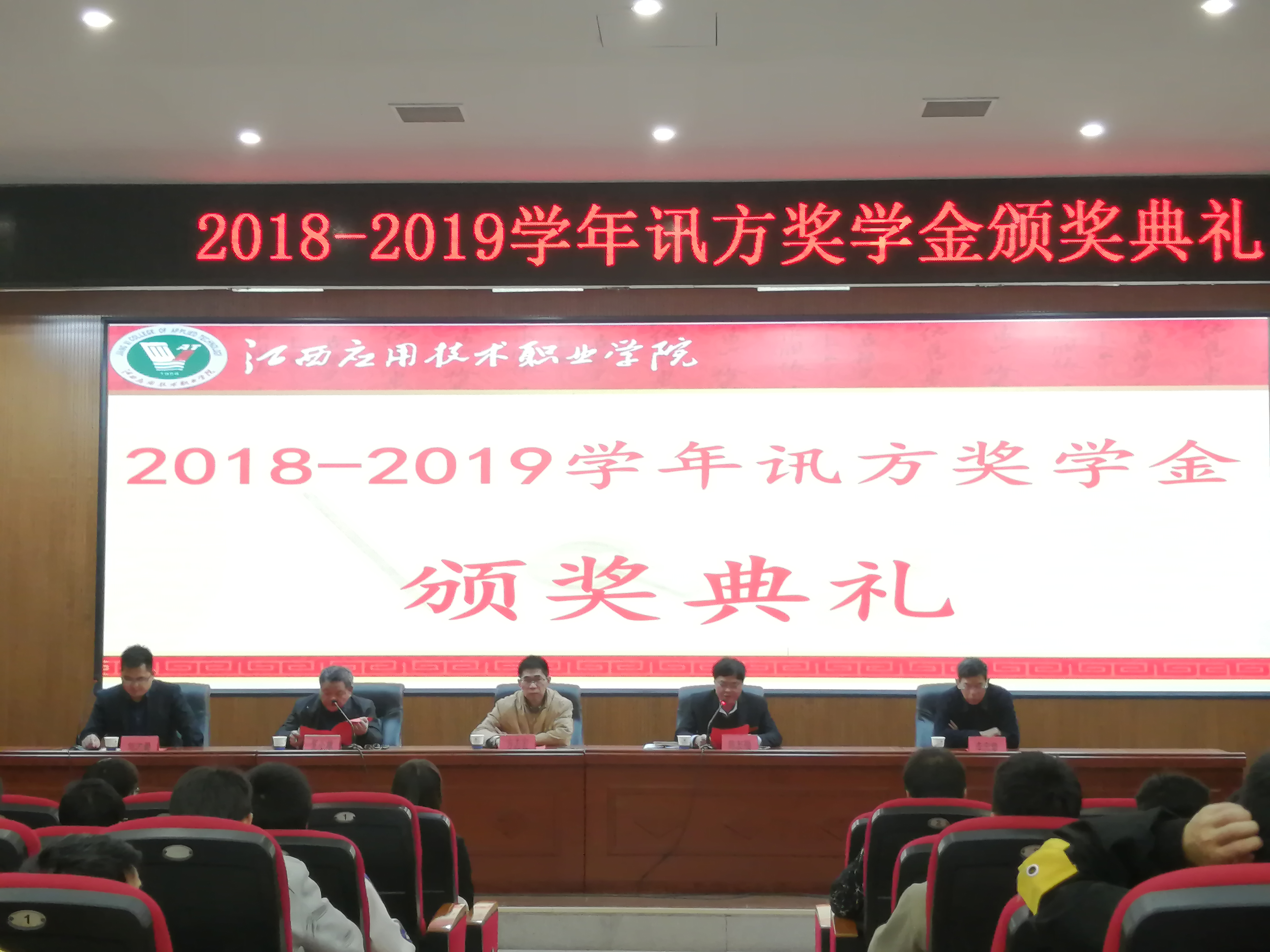 2019年12月3日下午,企业奖学金——bbin宝盈集团官网奖学金颁奖典礼在江西应用技术职业学院学术报告厅举行,参加颁奖典礼的人员有:校企合作处处长方志宏、信息工程学院书记贺小熊、院长陈友福、副院长李中堂,我司华中校企合作部总监邹志勇、江西区域总监王尚奎以及信息学院老师、工作人员和bbin宝盈集团官网技术学院部分学生。